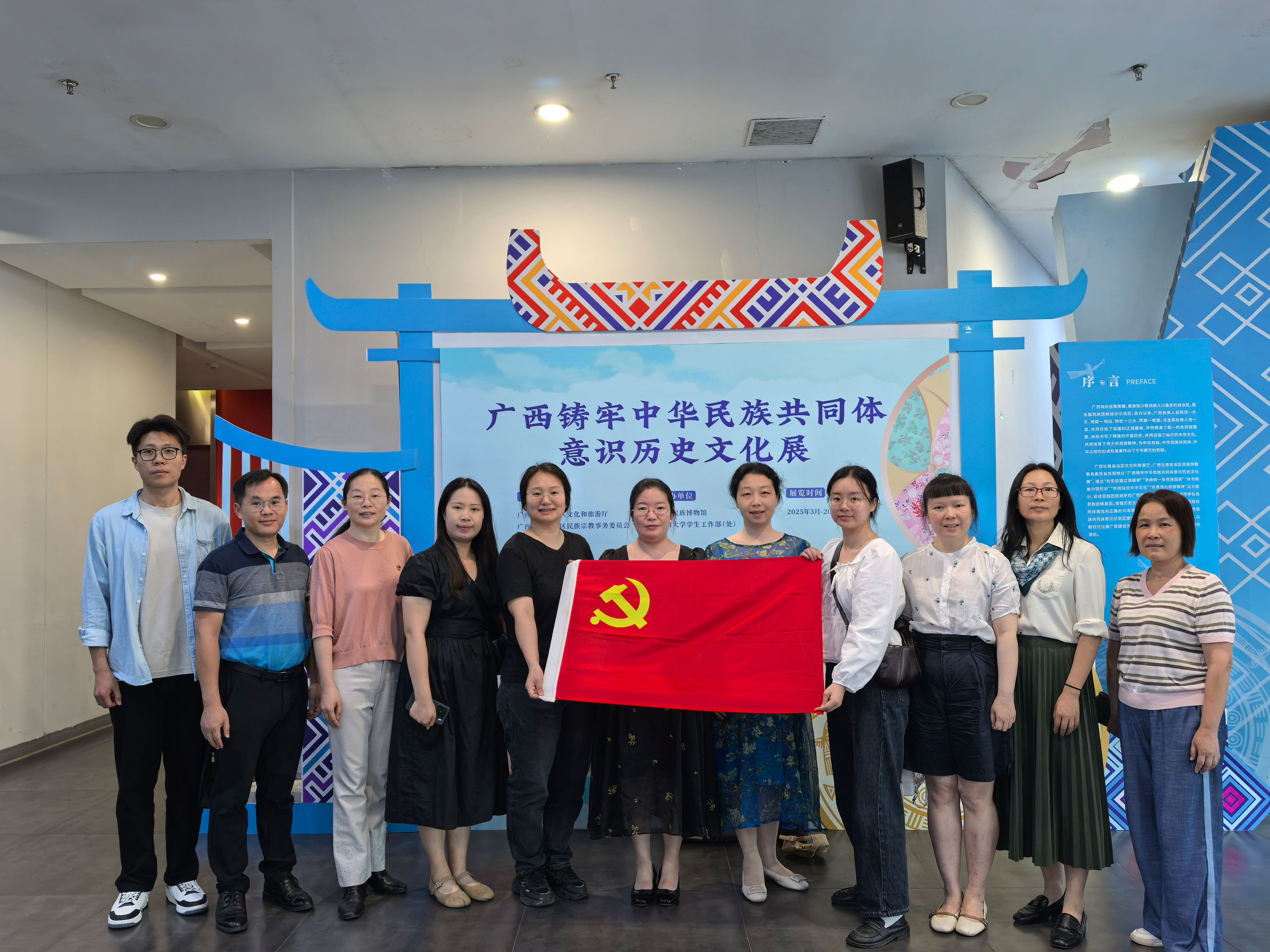 在讲解员的引导下,大家认真参观了展区,全面深刻地了解了广西各民族在历史长河中携手共建祖国疆域、共塑统一多民族国家的壮阔历程。展览重点呈现了广西各族人民在推动中华文明发展、培育伟大民族精神、创造璀璨文化成果等方面作出的卓越贡献,生动诠释了“中华民族一家亲”的深刻内涵。